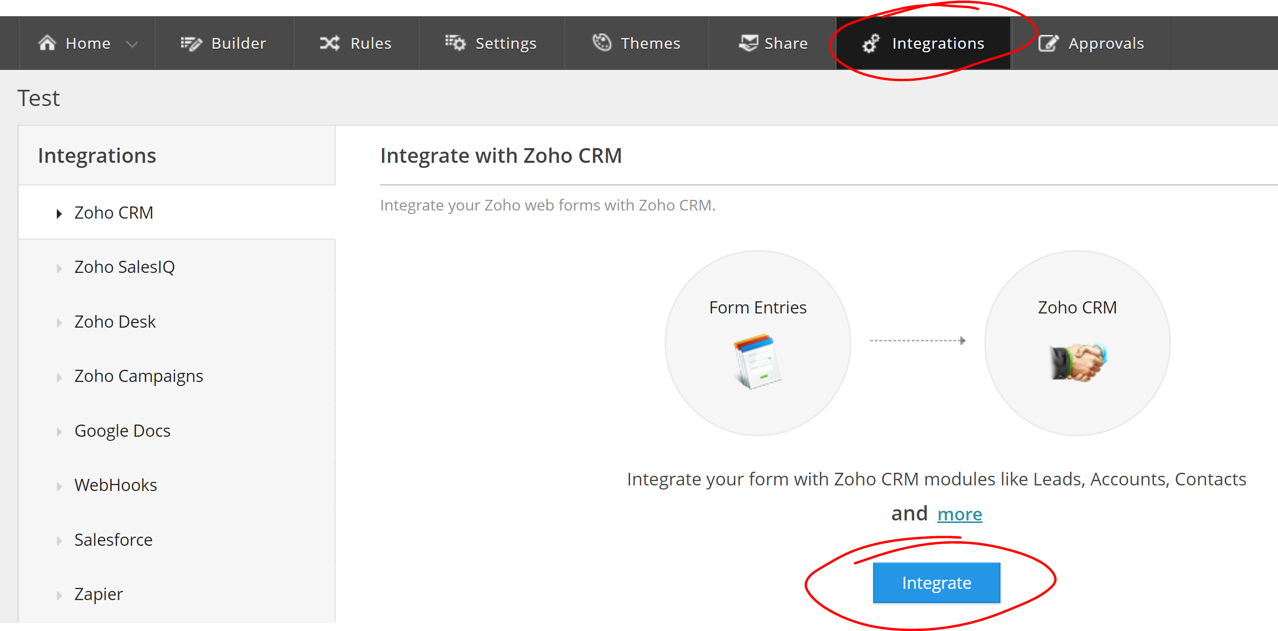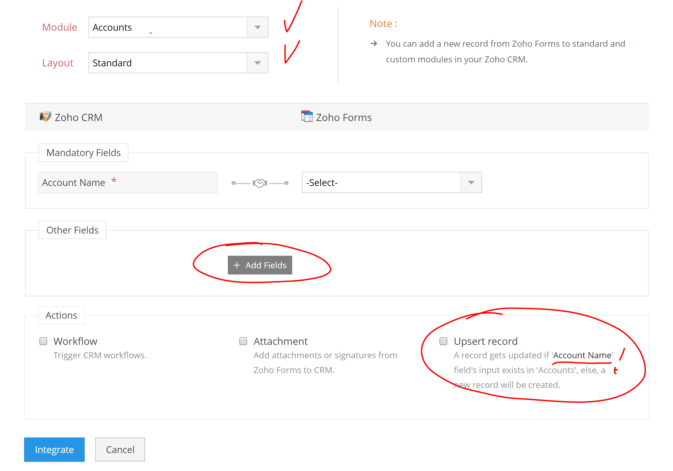 - Setup Zoho Form - CRM integration: